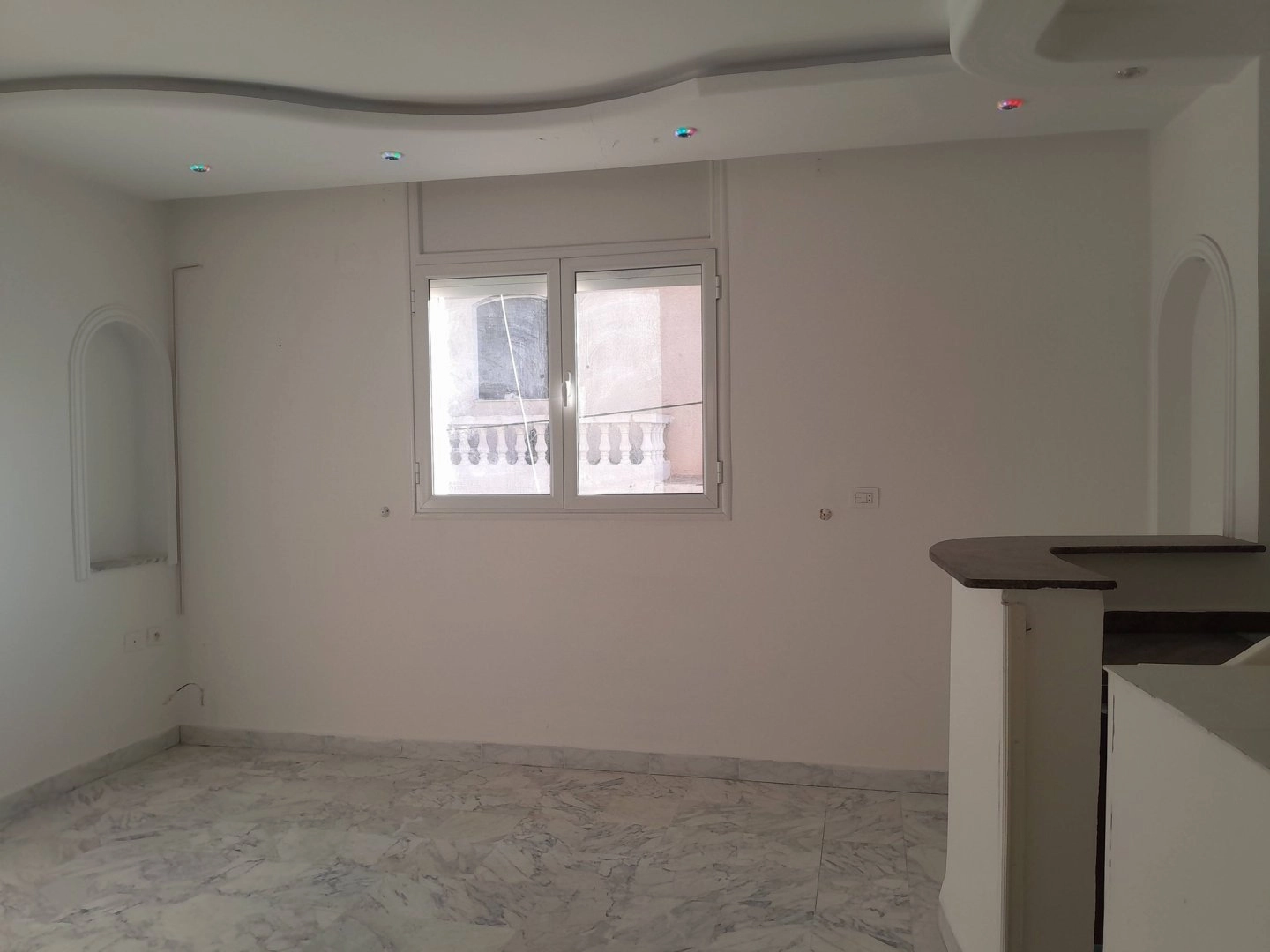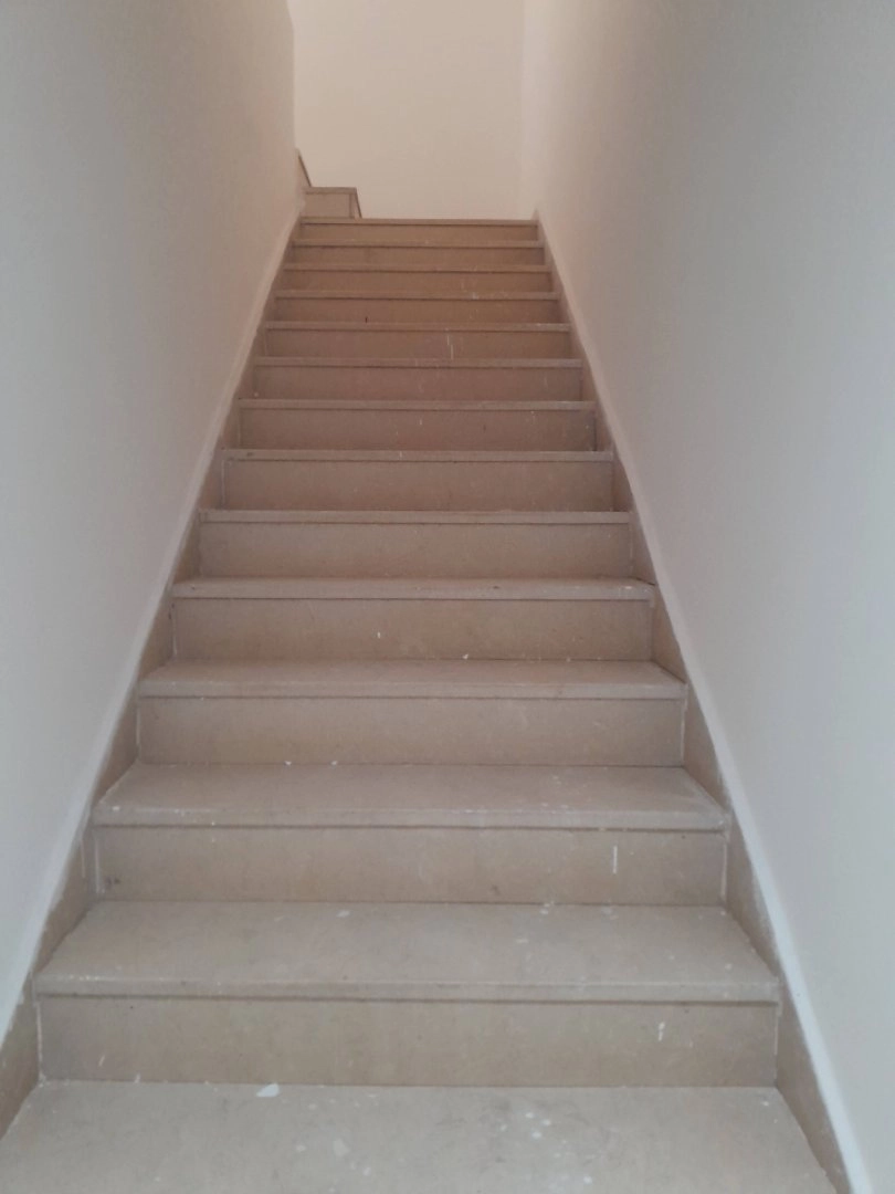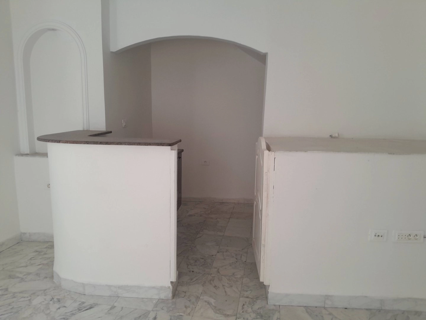 الطابق الاول به صالة كبيرة و 2 غرف نوم و مطبخ صغير و دورة مياه
