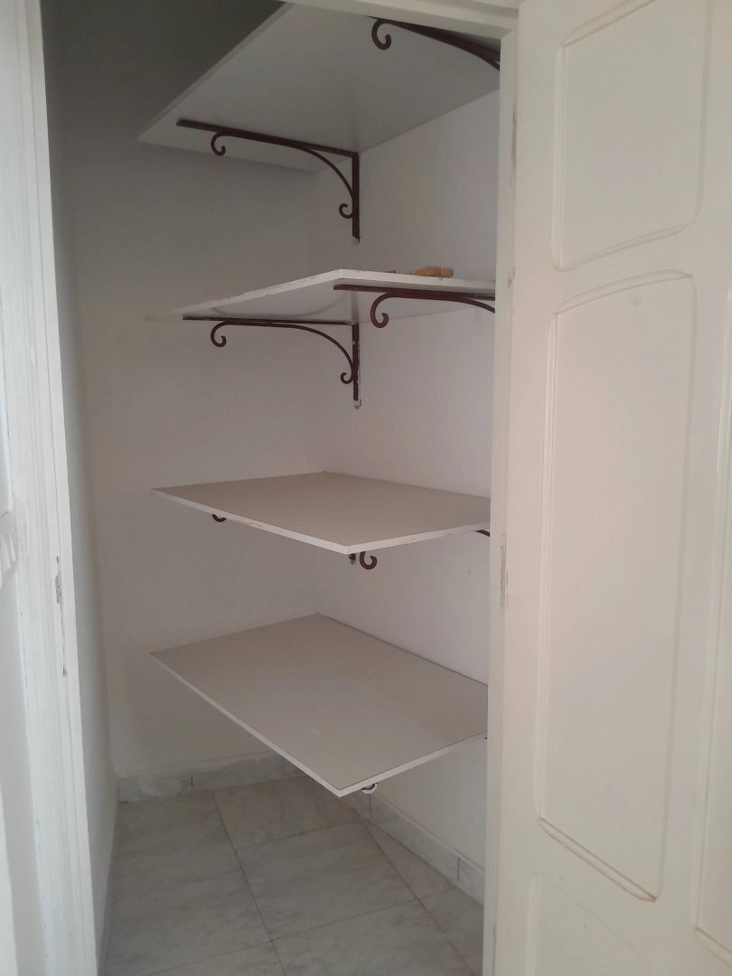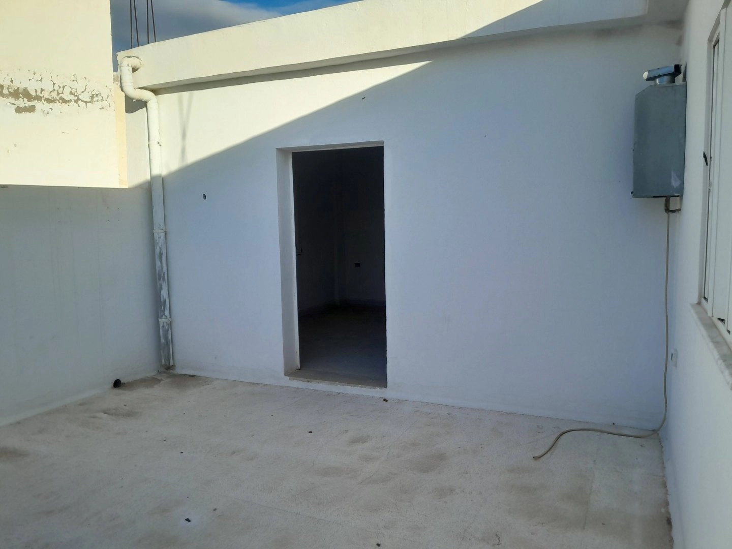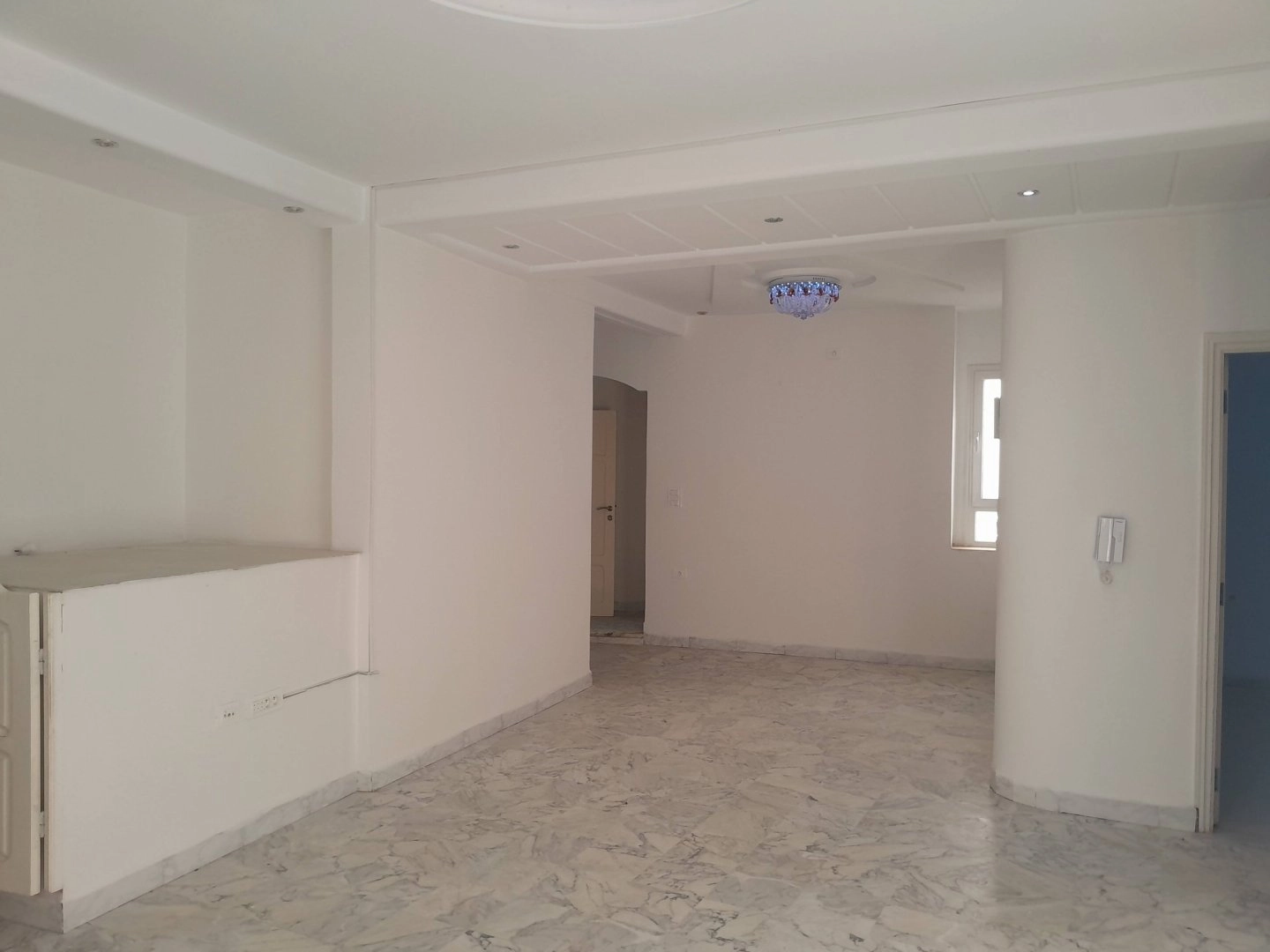 الطابق الاول به صالة كبيرة و 2 غرف نوم و مطبخ صغير و دورة مياه