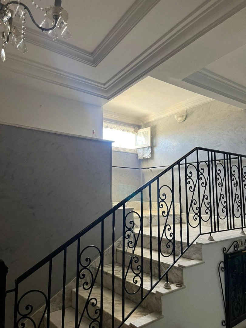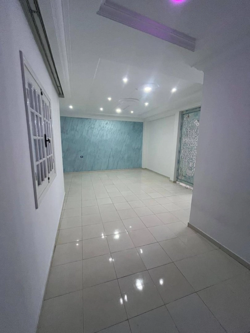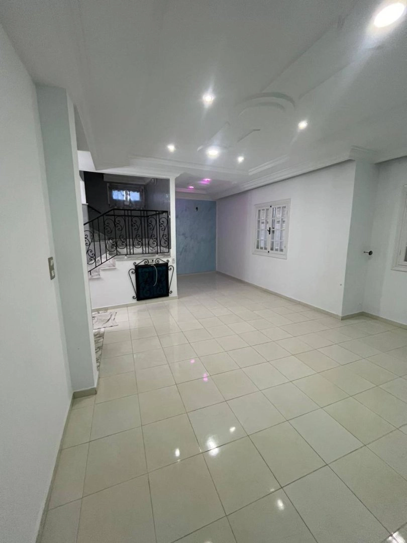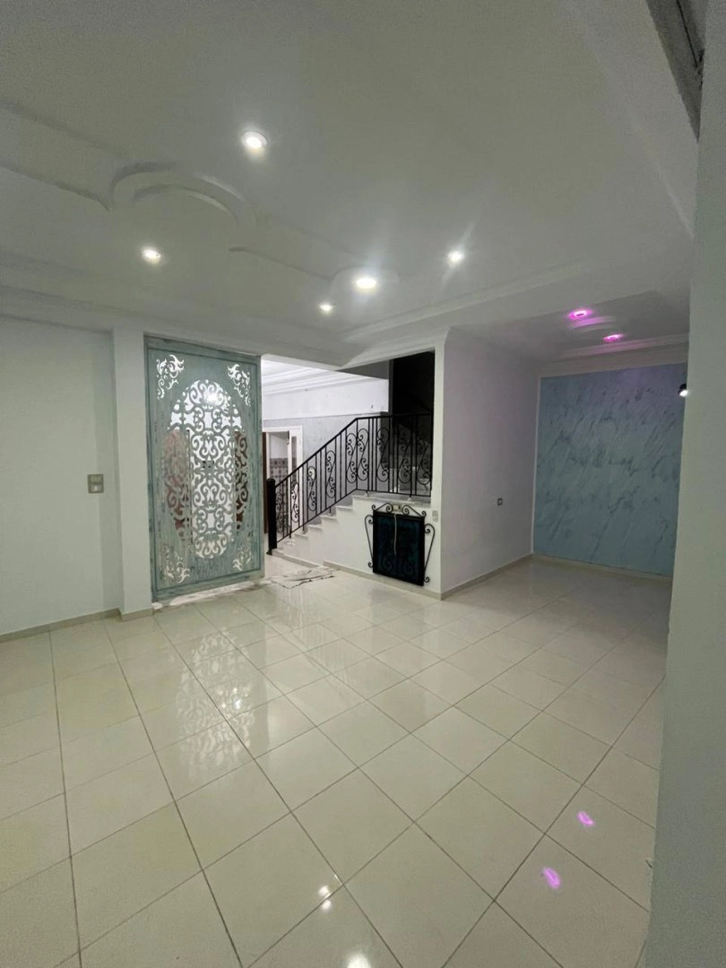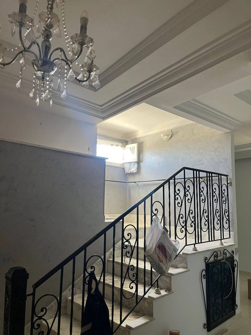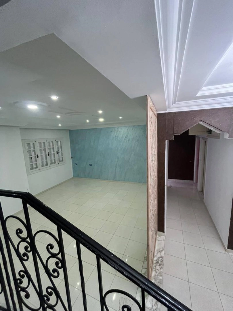 و الطابق الثاني به هول كبير و 2 غرف نوم و مطبخ ثاني صغير و بيت استحمام و تيراص مساحته 30 م تقريبا .