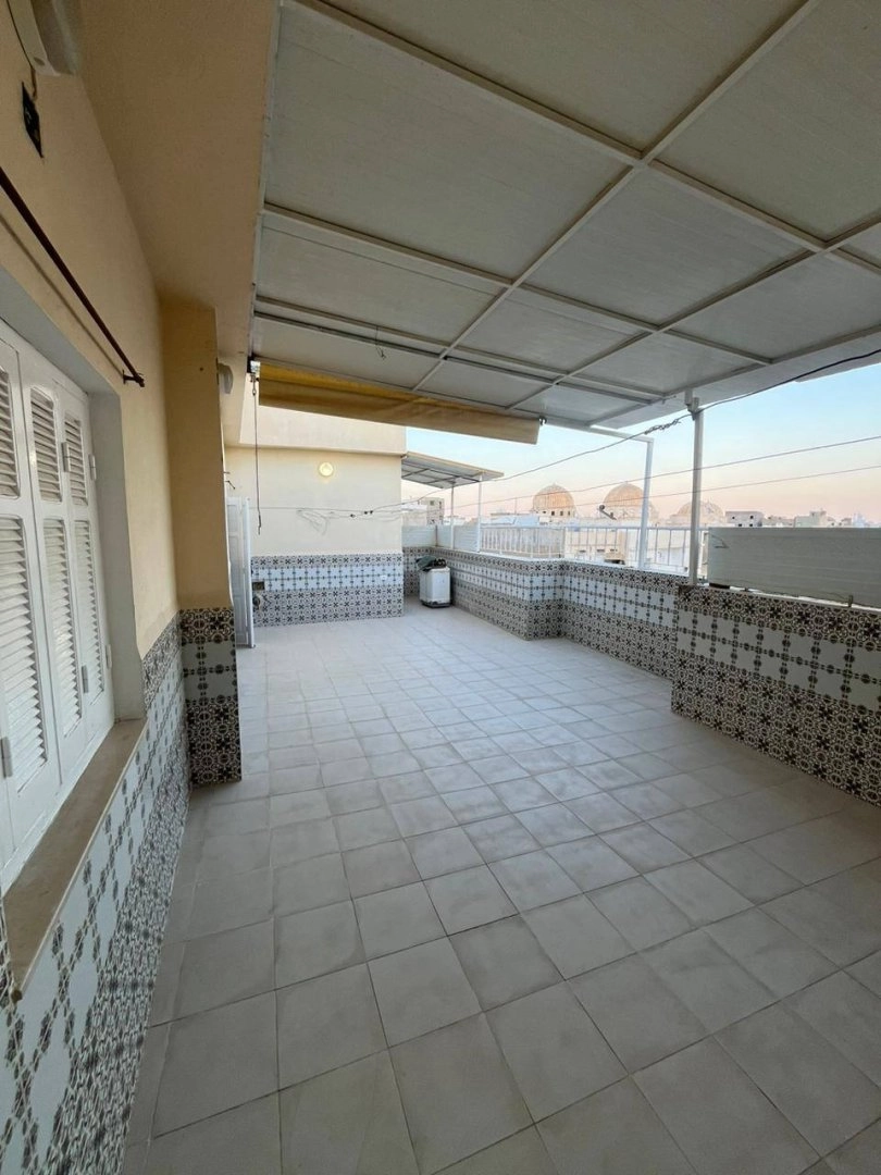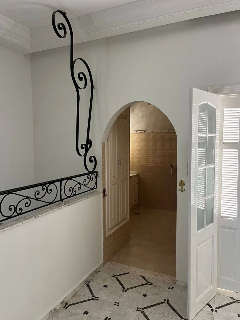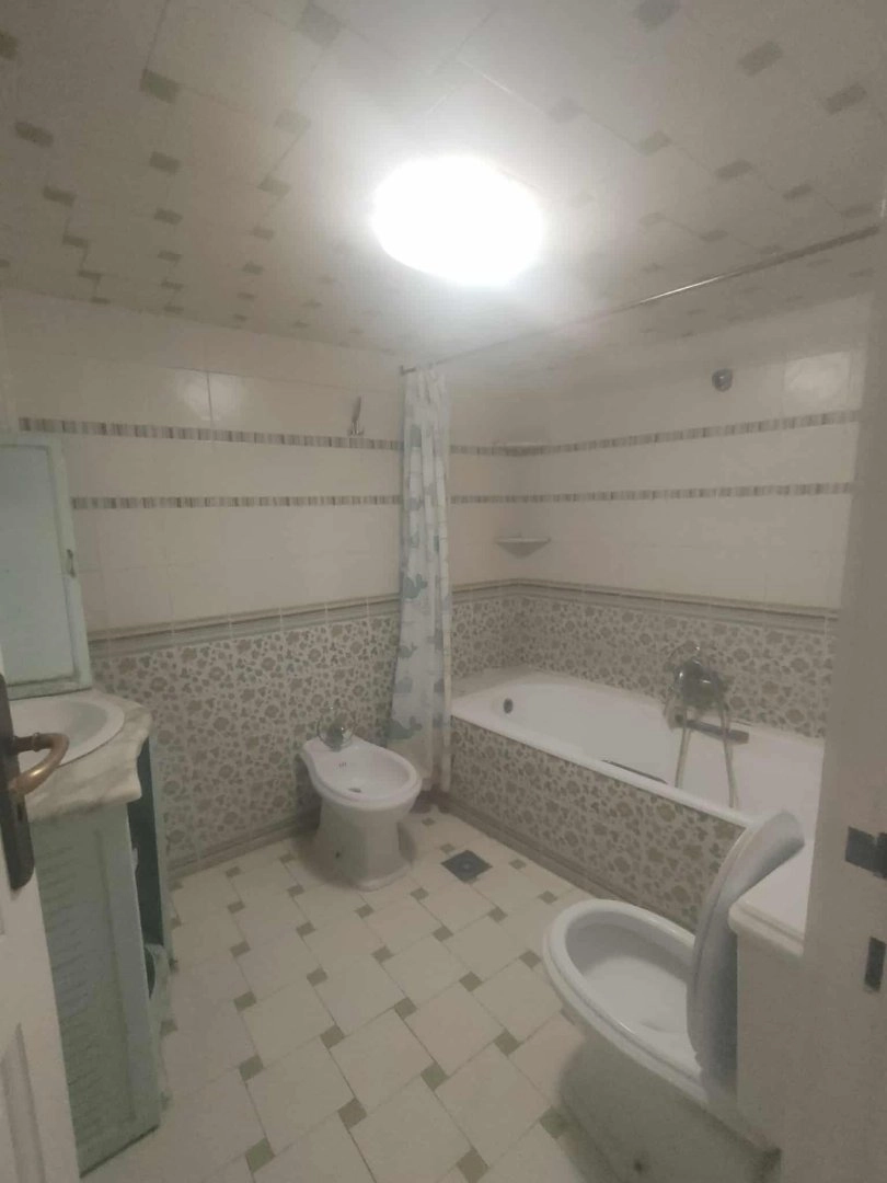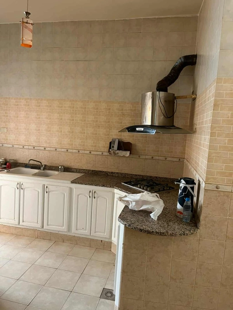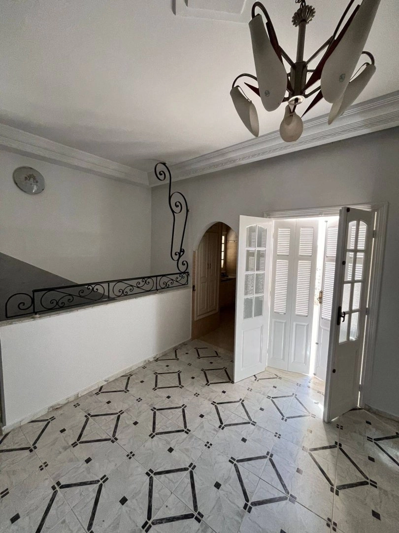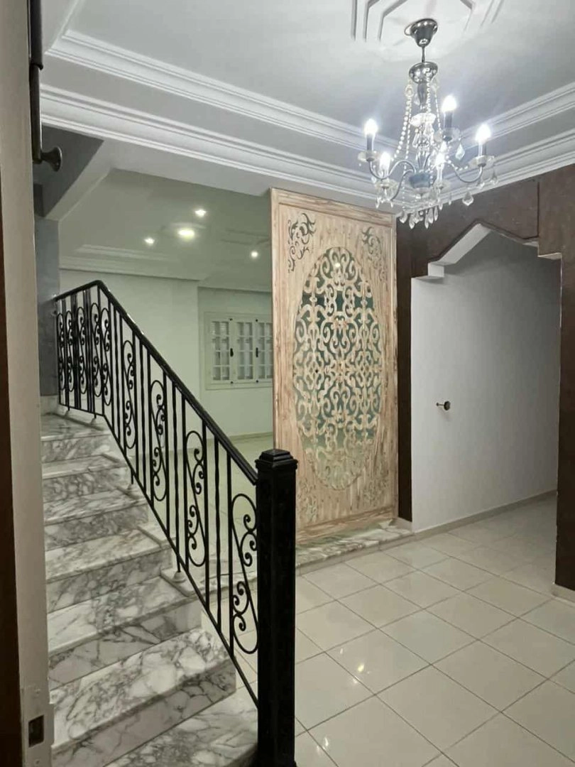 و الطابق الثاني به هول كبير و 2 غرف نوم و مطبخ ثاني صغير و بيت استحمام و تيراص مساحته 30 م تقريبا .