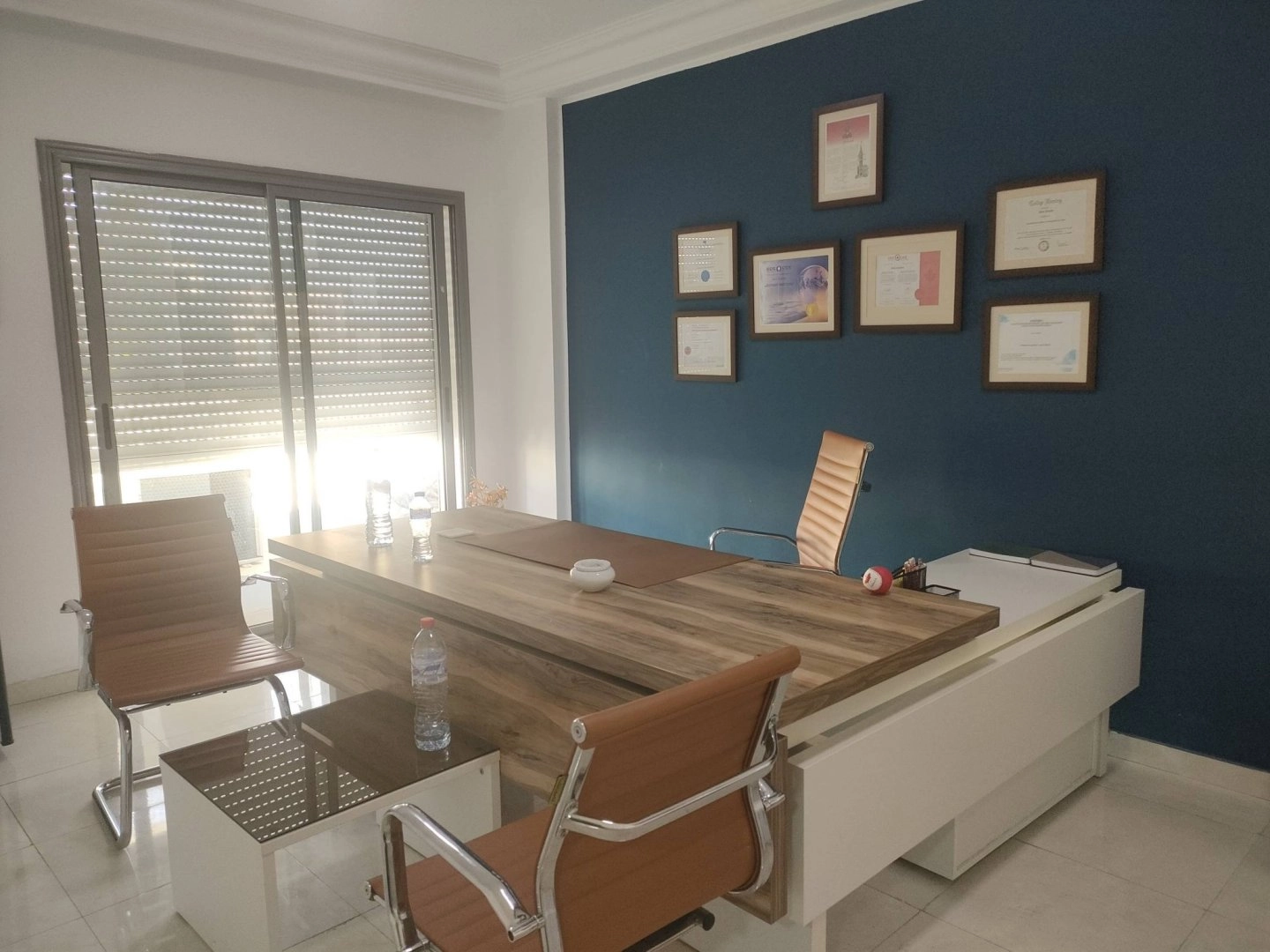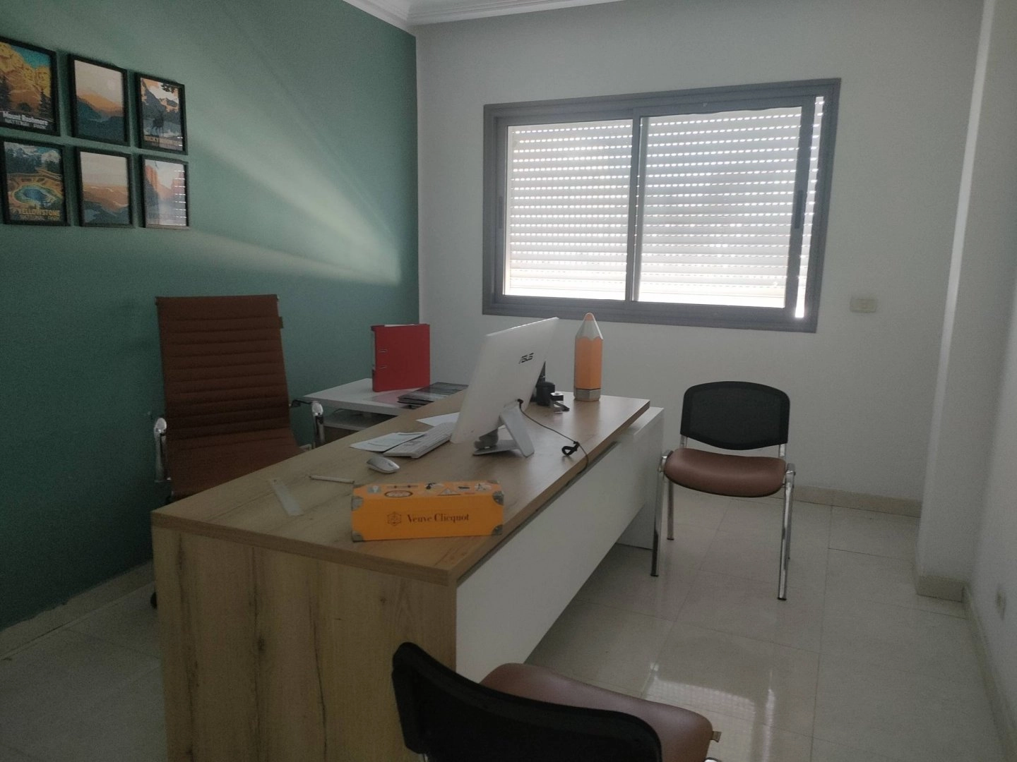 كل مكتب به قاعة استقبال كبيرة و 2 مكاتب واسعين و مطبخ و دورة مياه و عدد02 تيراص